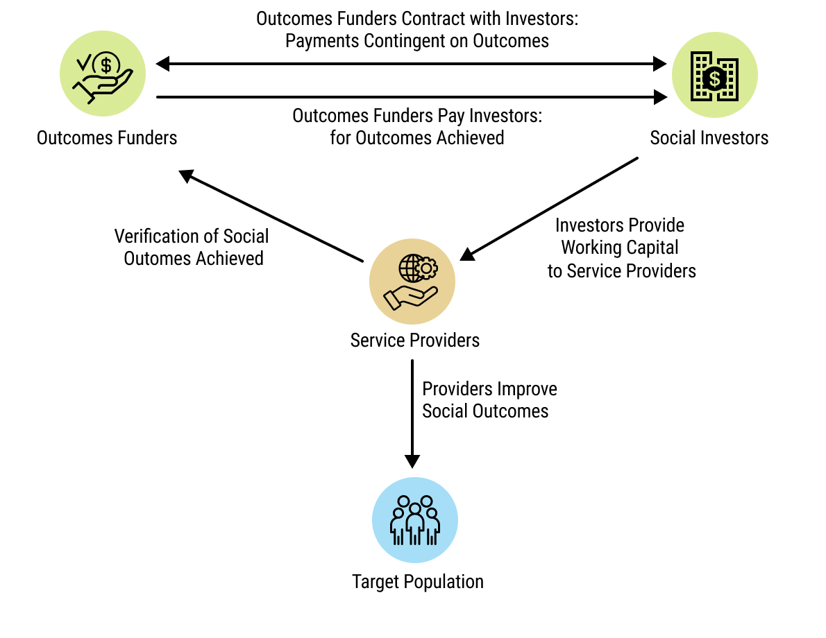 123chap5_p_123Impact bonds represent a distinct contractual structure from those described above. Rather than adapting a standard debt instrument, they comprise a series of contracts among governments, donors, investors and service providers, under which repayment is contingent upon the achievement of predefined social or health outcomes.
