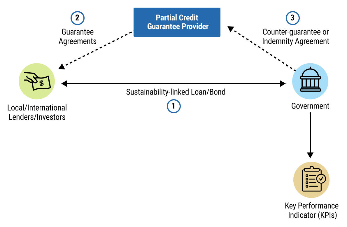 In PPPs exposed to political risks, such as the risk of non-payment by a government or a government-owned entity, or breach of contracts, MDBs also offer partial risk guarantees (PRGs) on government obligations to encourage lenders and investors to participate. In each case, the financial structure and the choice of credit enhancement mechanism need to be tailored to the specific context. In the case of sustainability-linked loans (SLL) and debt swaps, the credit enhancement mechanism needs to reflect the country’s financial situation, implementation capacity, and policy objectives. For health PPPs, credit enhancement mechanisms are informed by the project type and model. Note that there is a growing trend to combine multiple credit enhancement mechanisms to maximise coverage and further reduce the overall cost of financing operations.